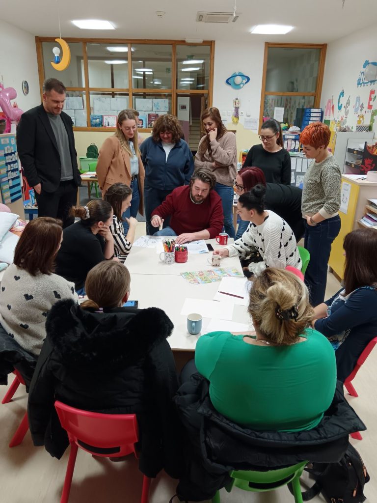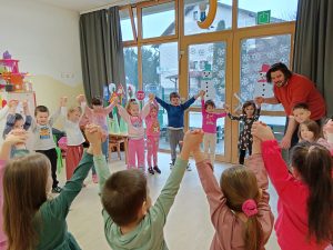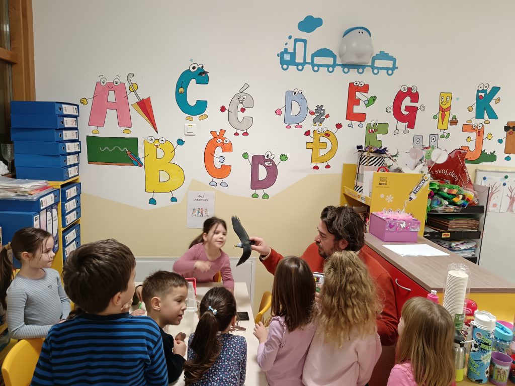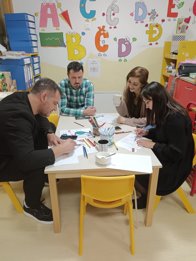 Radionica je protekla u opuštenom, veselom i poticajnom raspoloženju. Uz boje i puno smijeha, svi smo na trenutak ponovno postali djeca, gledajući svijet onim posebnim, nevinim očima. Svaka rečenica koju su djeca izmaštala dobila je svoj vizualni identitet zahvaljujući trudu i kreativnosti naših roditelja.