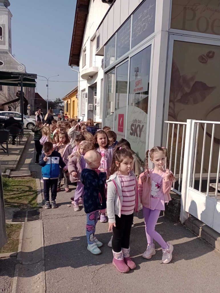 Uoči Dana žena, u petak, 6.3., djeca DV Grlica, puna uzbuđenja i dobrog raspoloženja, krenula su u malu avanturu noseći posebne darove – čestitke koje su sami izradili za žene u našem mjestu. Djeca su s mnogo truda i ljubavi ukrašavala čestitke, a tijekom šetnje radosno su ih dijelila ženama koje su susretala putem – susjedama, bakama, prolaznicama i svima koji su im se našli na putu. Svaka čestitka izmamila je osmijeh i toplu riječ zahvalnosti. Ova mala gesta razveselila je mnoge, a djeca su s ponosom pokazala koliko pažnje i dobrote mogu podijeliti s drugima. Šetnja je protekla u veselju, smijehu i lijepom druženju, a naše mjesto tog je dana bilo ispunjeno dječjom radošću i čestitkama punim ljubavi .U našem vrtiću vjerujemo da djeca donose najljepšu radost, a upravo smo je ovom prigodnom šetnjom podijelili s našim sumještanima. Uz podršku svojih odgojiteljica, djeca su svojim rukama izrađene čestitke dijelila prolaznicama, želeći istaknuti važnost i ulogu žena u našim životima .Ova akcija izazvala je oduševljenje i ugodno iznenađenje među mještanima, podsjećajući nas kako i mali znakovi pažnje mogu imati veliko značenje.
