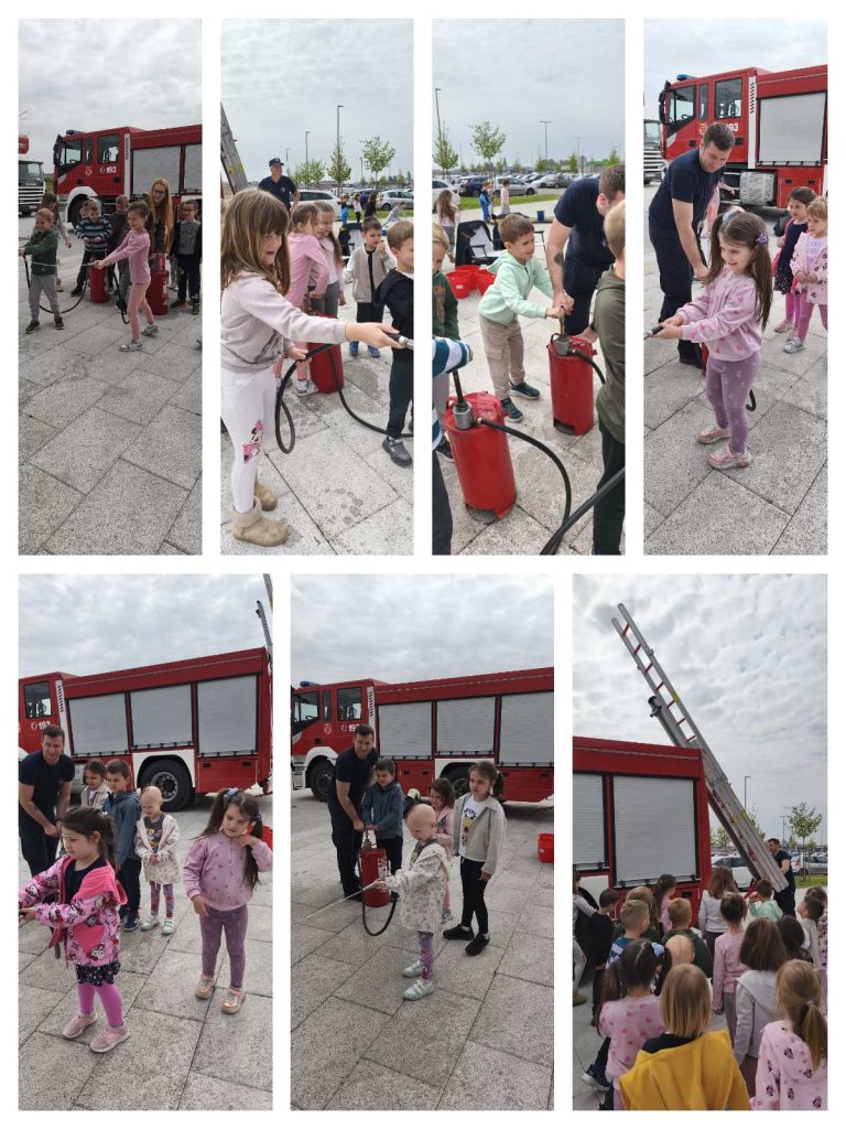 Vatrogasna radionica – druženje s vatrogascima, gađanje vodom u metu ,upoznali vatrogasnu opremu i vatrogasno vozilo